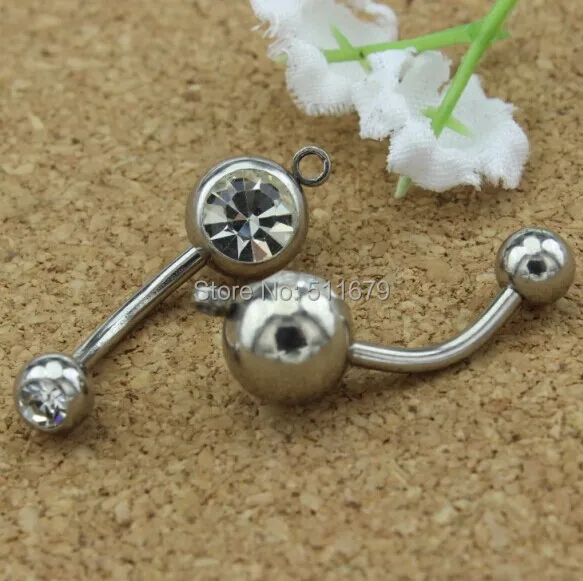 (14 г * 12*5/8 мм) Вертикальный обруч добавить свой собственный Шарм Живота Кольцо Двухместный Кристалл CZ ясно Цвет Украшения для тела