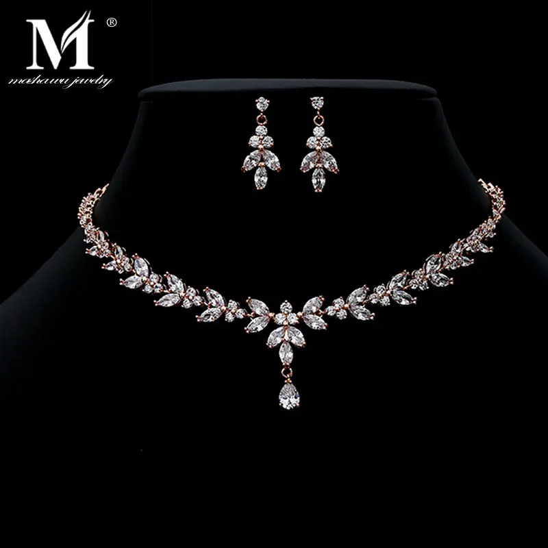 Бесплатная доставка новейший роскошный Искрящийся Блестящий кубический циркон прозрачное ожерелье серьги Свадебные Ювелирные наборы Акс...