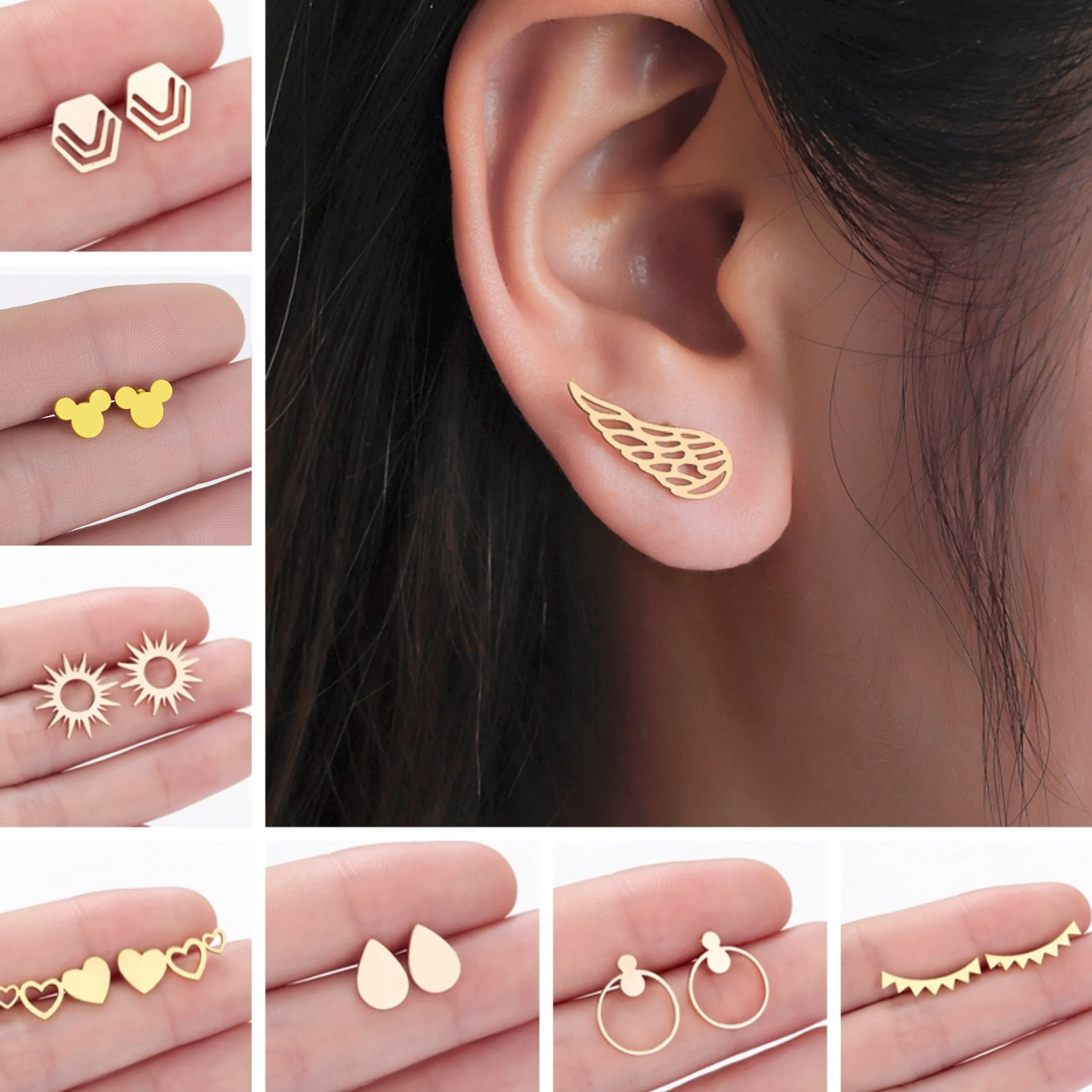 Серьги из нержавеющей стали женские шестигранные крылья капли воды Шпильки геометрической формы серьги винтажные модные ювелирные издели...