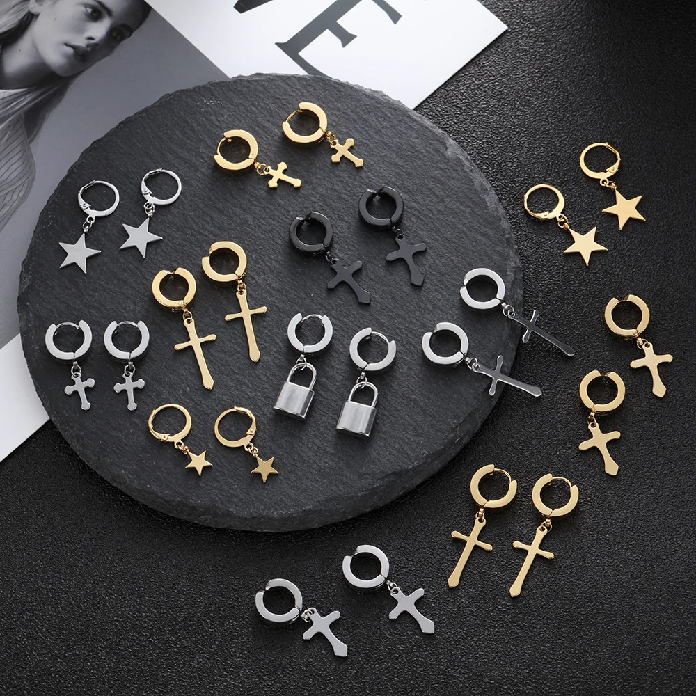 1 пара модная унисекс из нержавеющей стали подвеска в форме Креста крест кулон манжета обруч уха клип серьги не пирсинг серьги ювелирные изд...