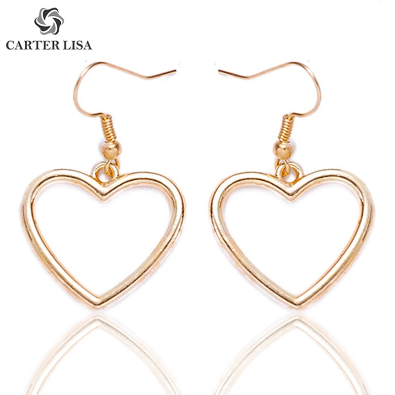 CARTER LISA Золотая подвеска сердце Висячие серьги для женщин Девушка этнические модные ювелирные изделия вечерние подарки на день Святого Вале...
