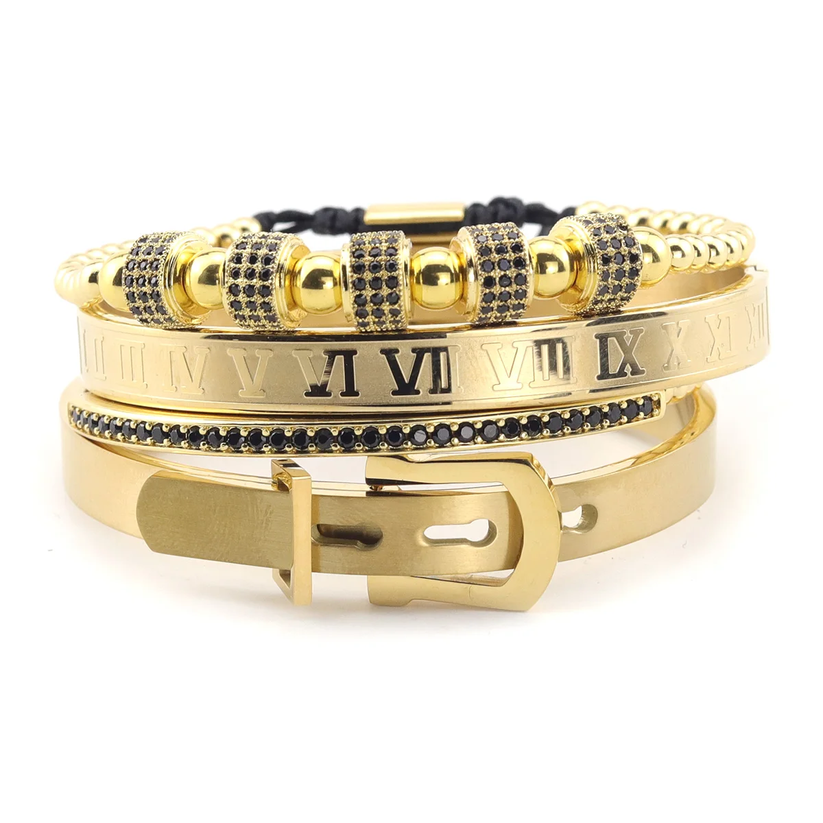 4 шт./компл. золото в стиле «хип-хоп» ручной работы из бисера браслет Для мужчин Медь CZ Циркон Корона с римской нумерацией, Браслеты & Bangles, роскошный, для ювелирных изделий