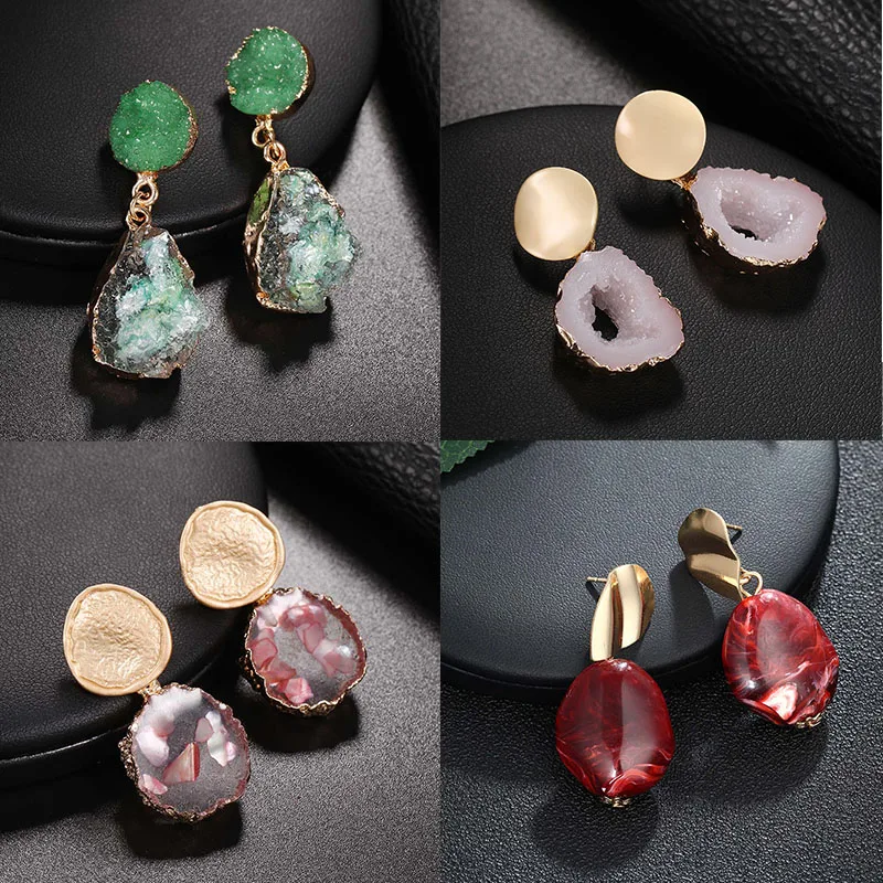 2019 Новые Натуральные Висячие висячие серьги из полимерного камня Винтажные висячие серьги для женщин элегантные геометрические серьги Brincos Bijoux