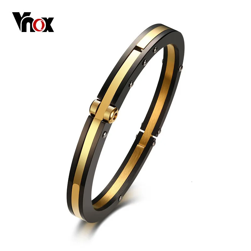 Стильный мужской Браслет-манжета Vnox 7 мм, классический простой мужской браслет из нержавеющей стали черного и золотого цвета