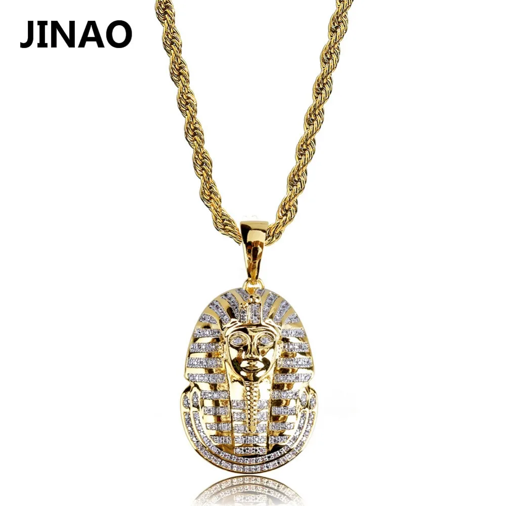 JINAO хип-хоп ювелирных изделий, из золота Цвет покрытием египетского фараона кулон Цепочки и ожерелья микро проложить Циркон Шарм Сеть для Дл...