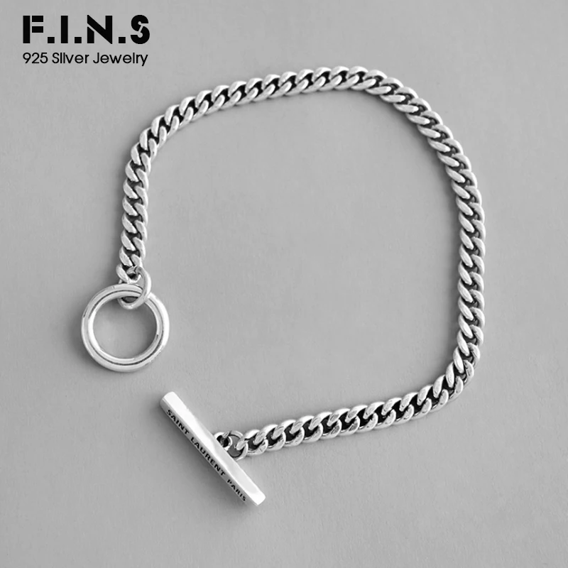 F.I.N.S корейский S925 стерлингового серебра ожерелье ретро старый геометрический круг бар звено цепи браслет серебро женский костюм ювелирные ...