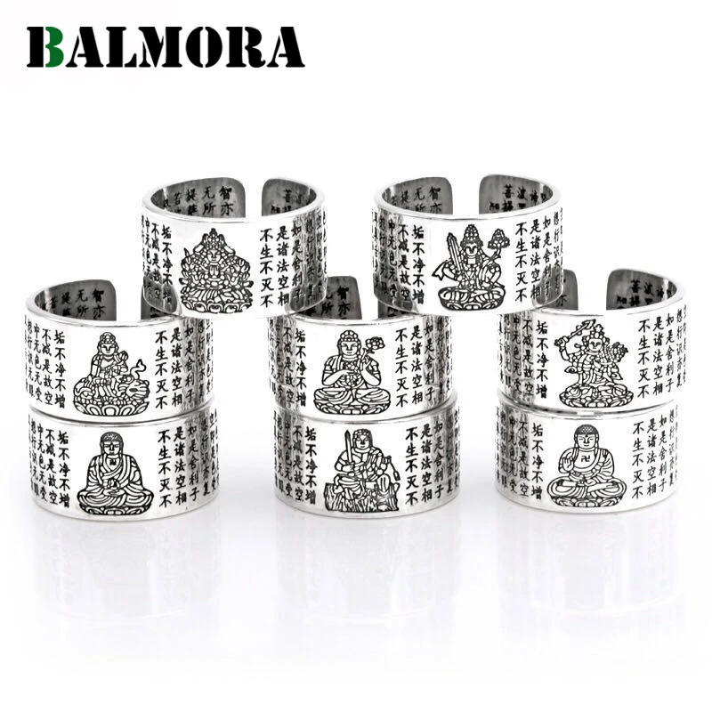 Балмора 100% реальные 990 чистого серебра буддийский мантра кольца для Для женщин Для мужчин открытие кольцо 8 видов стилей цельнокроеное плат...