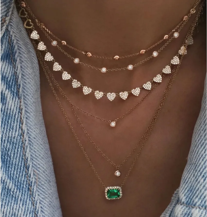 Сердце ожерелье микро pave cz мульти шт сердце цепочка из звеньев с шармом девушка подарок на день Святого Валентина модные украшения