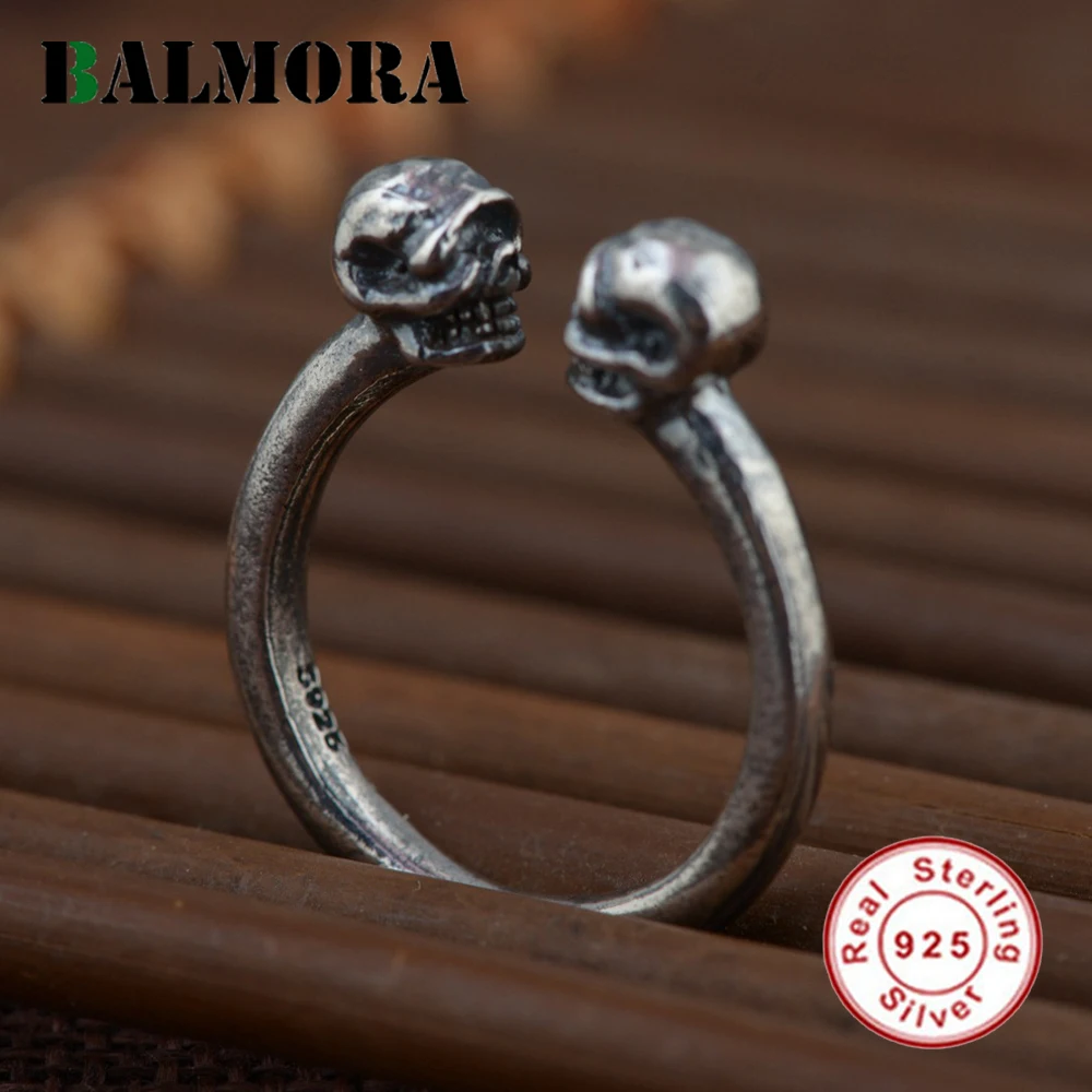 Балмора Аутентичные стерлингового серебра 925 Винтаж череп Открытие Кольца для Для мужчин вечерние подарок кольцо тайский серебряный Прохл...