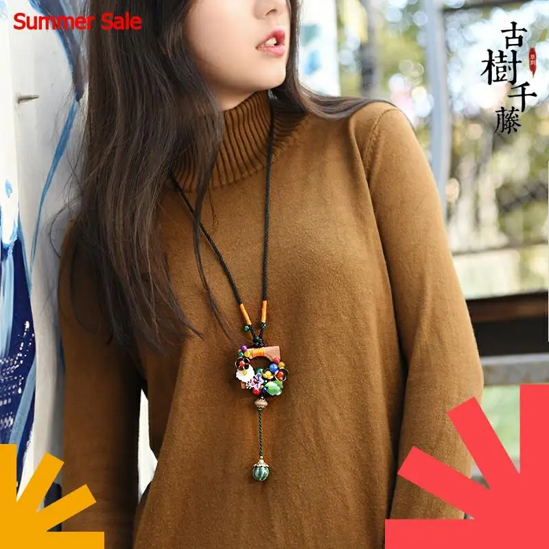 Винтажное колье свитер для женщин Этническая длинный деревянный квадратный кулон цепочки и Ожерелья себе модные украшения Dropshopping