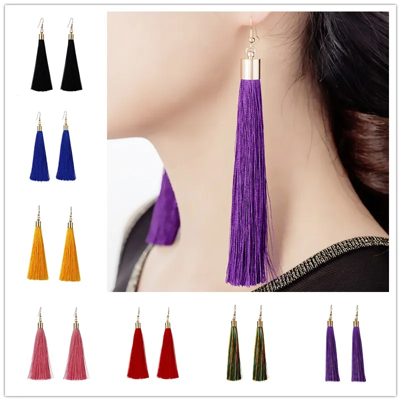 Серьги Модные украшения богемный кисточкой серьги букле d'oreille шелковой ткани длинные падение рождественские серьги для Для женщин ювелирн...