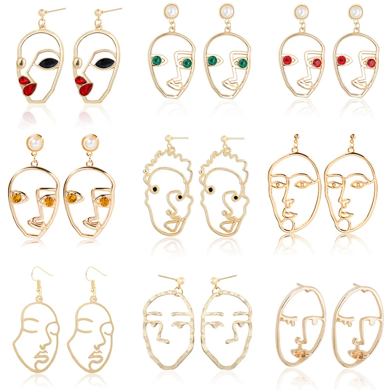 Женские Простые индивидуальные человеческие серьги с подвеской в виде Лица Ретро абстрактные полые металлические модные серьги ювелирные ...