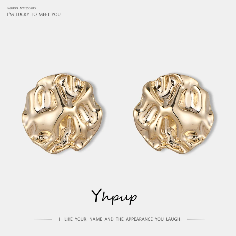 Yhpup модные корейские асимметричные массивные геометрические серьги-гвоздики серьги из меди и золота для женщин вечерние ювелирные изделия