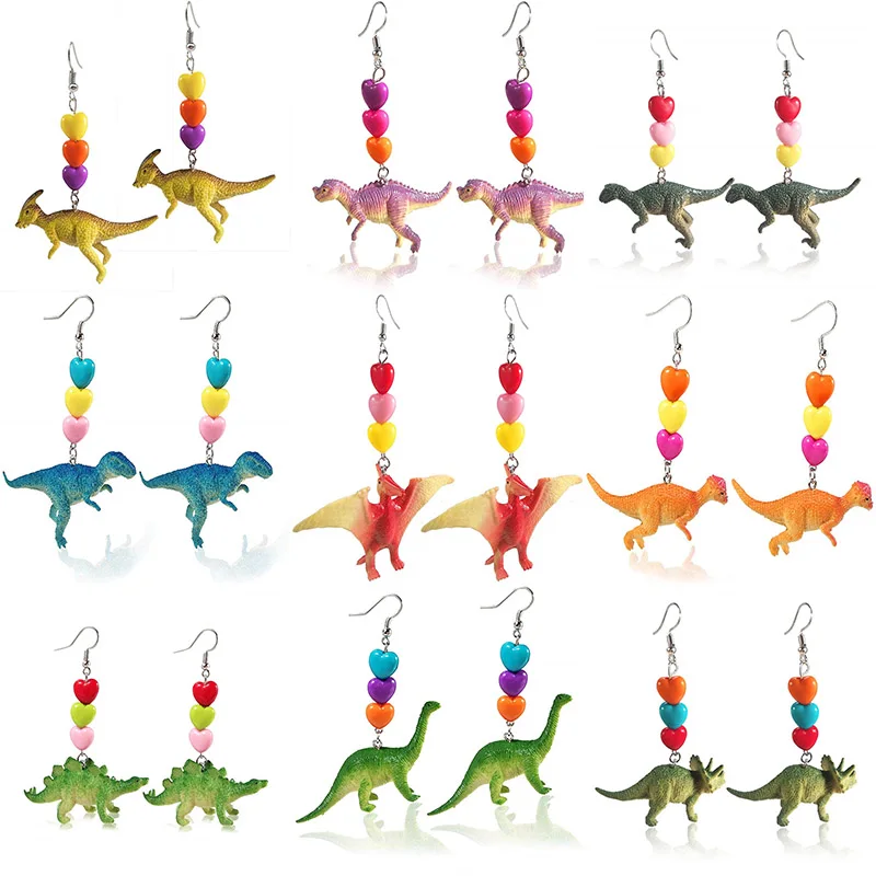 Женские длинные серьги с милым животным, забавные серьги-капли из смолы с изображением динозавра и сердца для девушек, 2019