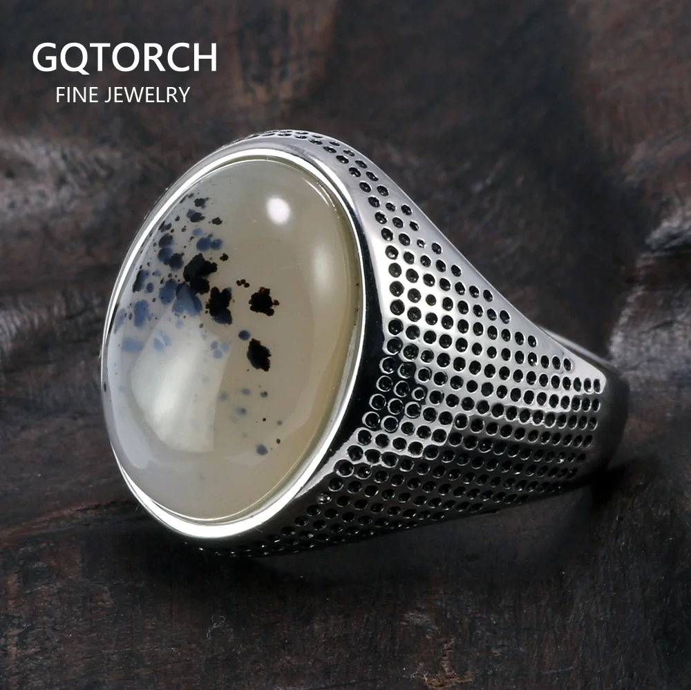 Подлинная Твердые 925 пробы Серебряные Кольца Прохладный минималистский пара с натуральным цвет Камни для женщин мужчи