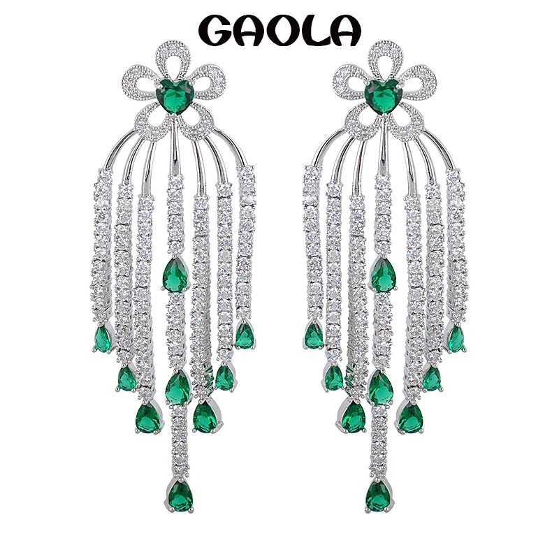 Двухцветные квадратные и водяные cz зеленые длинные висячие серьги для женщин Свадебные