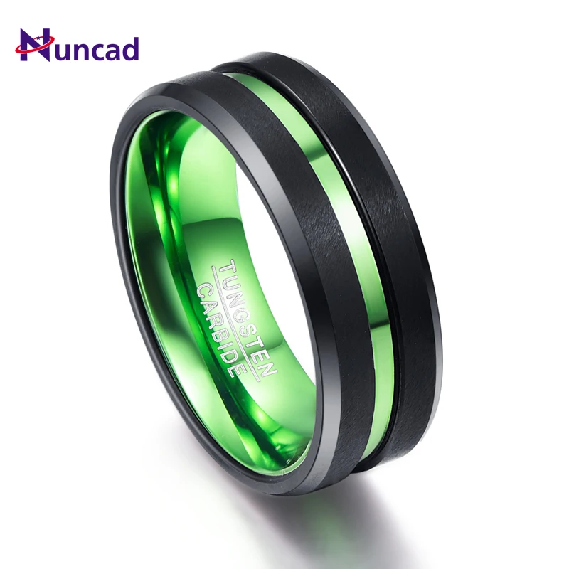 Новое поступление зеленый красный внутреннее кольцо скраб паз для мужчин кольца 100% вольфрам карбида пара Anillos para hombres модные украшения