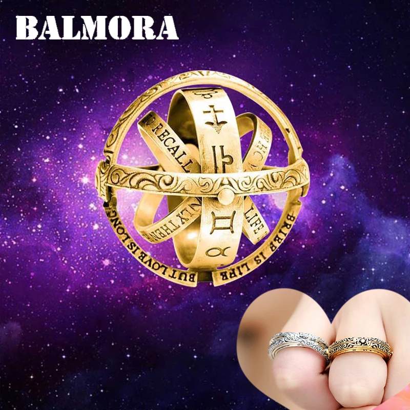BALMORA 2019 новое кольцо из стерлингового серебра 925 пробы вращающаяся астрономическая насадка шар кольцо космический палец любовник кольцо па...
