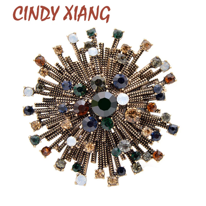 Винтажная женская брошь в виде цветка CINDY XIANG, элегантное украшение со стразами, отличный аксессуар высокого качества для пальто, жакета, доступно 2 цвета