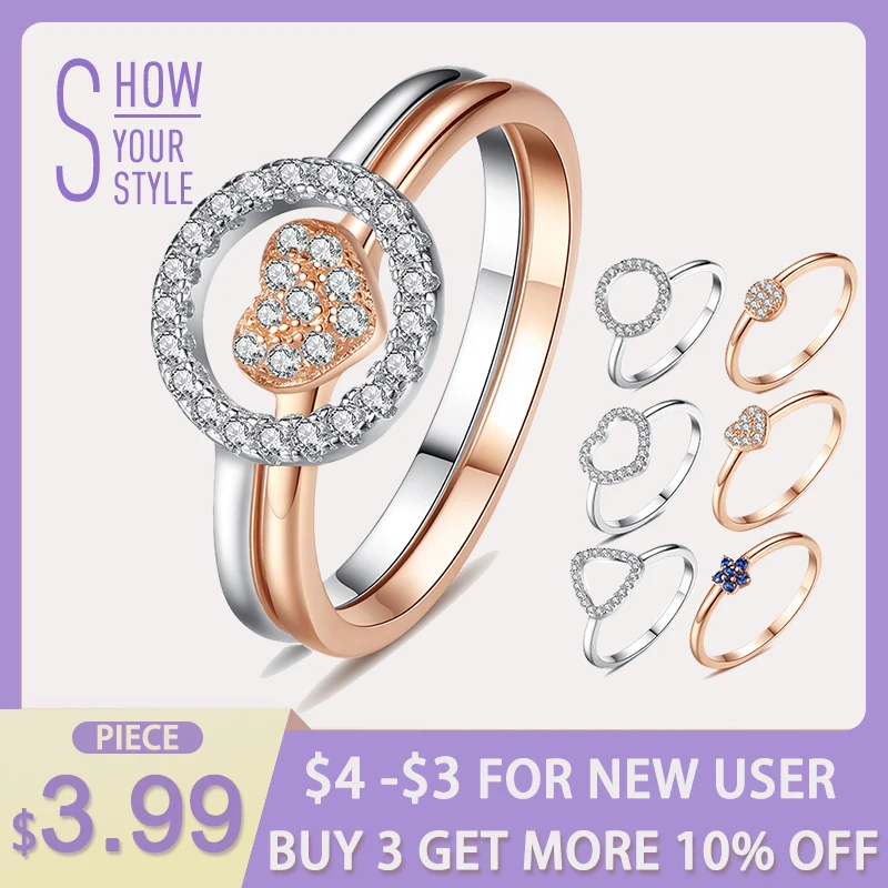 ELESHE модные Искрящийся фианит Кристалл полый круглый перстень Настоящее серебро 925 пробы кольца для Для женщин ювелирные изделия