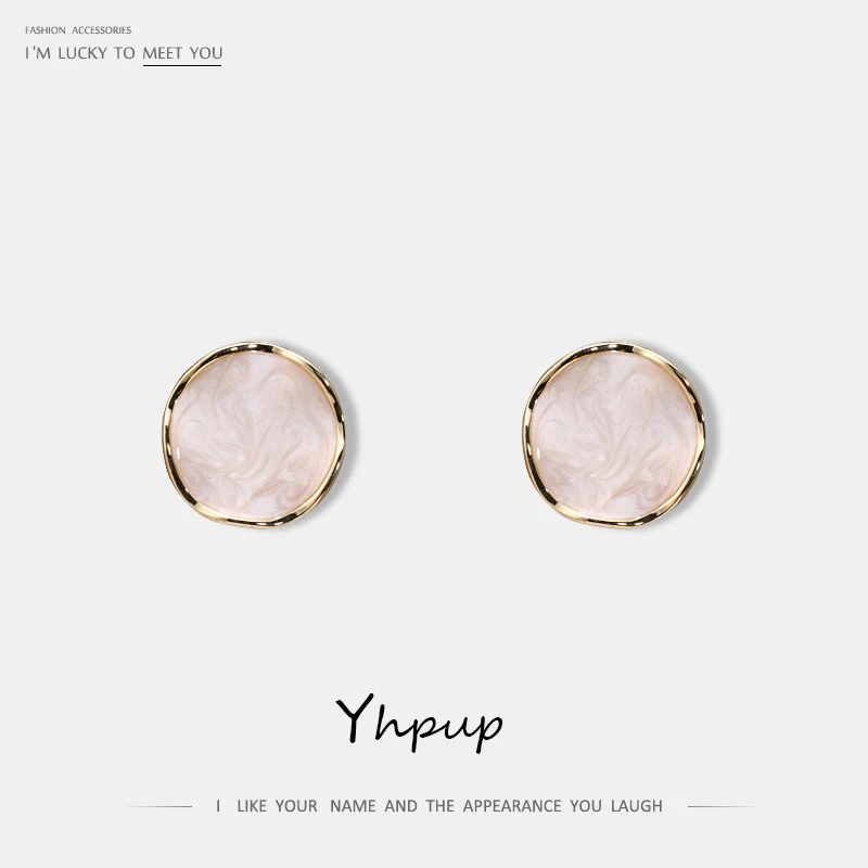 Yhpup модные минималистичные круглые корейские изысканные серьги-гвоздики с эмалью, геометрические серьги из цинкового сплава, ювелирные изделия для офиса для девочек