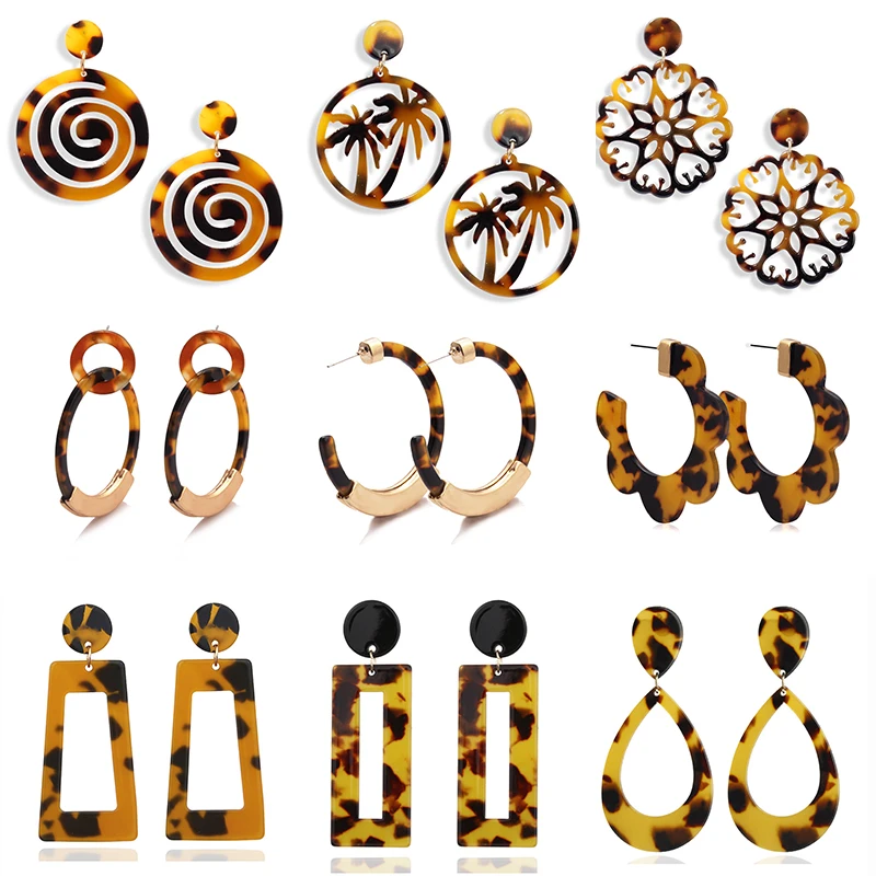 Женские большие геометрические круглые квадратные акриловые ацетатные Серьги Boho коричневые леопардовые Висячие свисающие серьги для женщ...