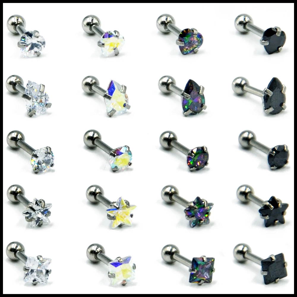 1 шт. 16 г хирургические Сталь Кристалл Циркон уха украшение для козелка Топ верхнее ухо Серьги Стад лабретка серьги, пирсинг