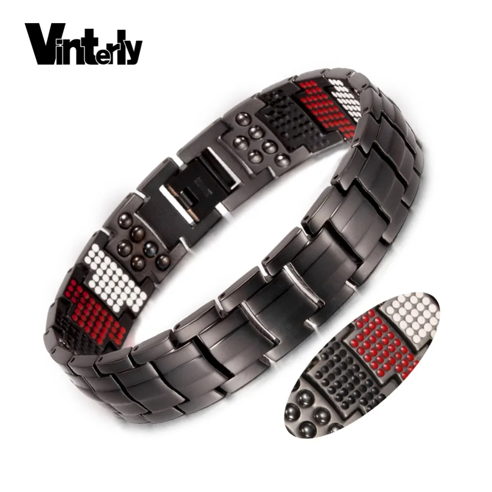 Vinterly черный браслет для мужчин чистый титан магнитный браслет для мужчин Панк здоровья Multi Германий Широкий Браслеты Ювелирные Украшения