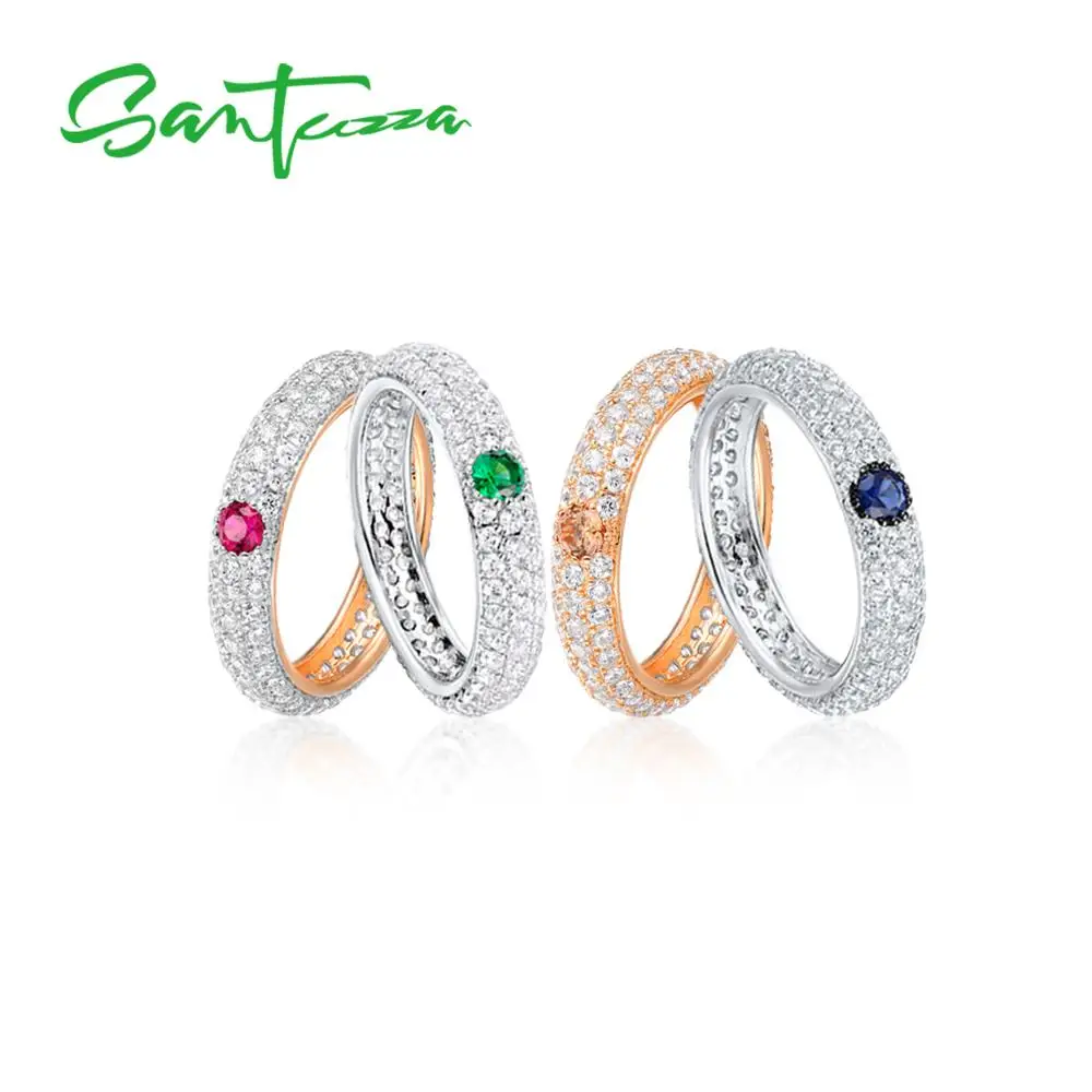 Сантуцца Серебряное кольцо Для свадебное кольцо для женщин многоцветные Поделочные камни Вечность Кольца чистое серебро 925 пробы модные юв...