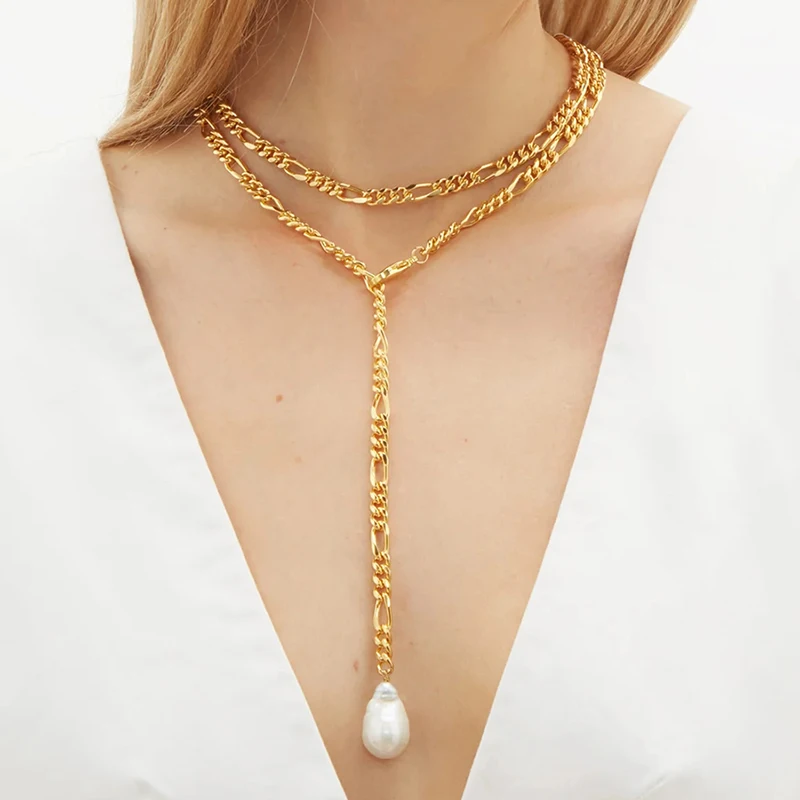 Женское длинное ожерелье с подвеской из натурального жемчуга sautoir femme cadenas de acero inoxidible para 2020, новый стиль хип-хоп, индивидуальность bizuteria