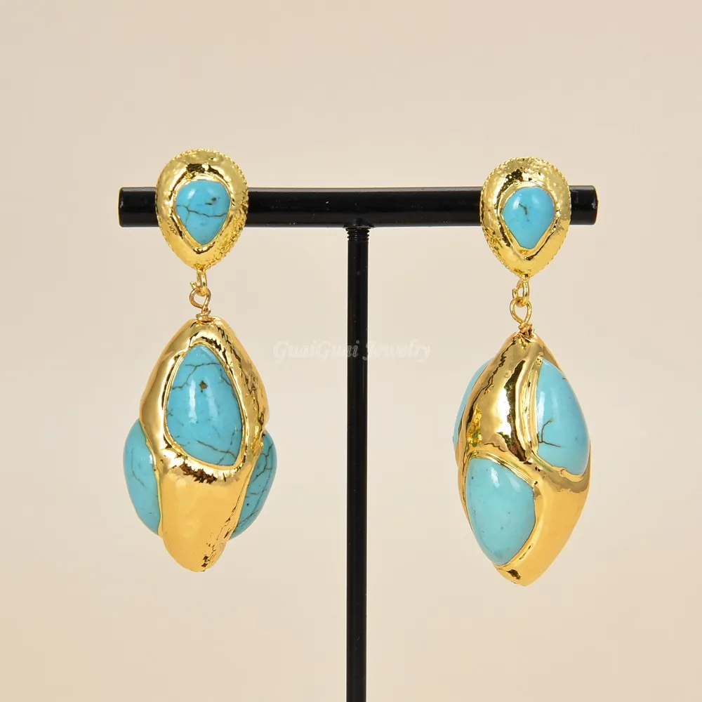 17x33 мм синий камень желтый с золотым покрытием серьги