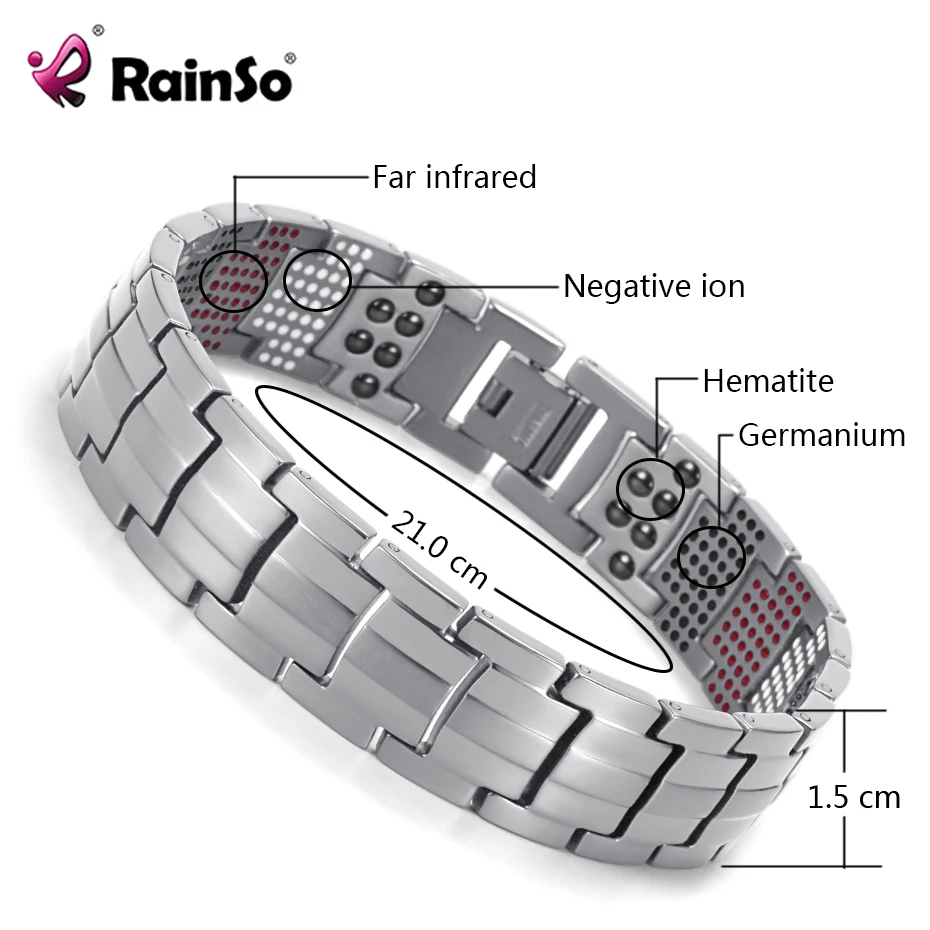 Rainso Для мужчин Jewelry Браслеты и браслеты гематит здравоохранения Напульсники очарование германий H Мощность Титан Браслеты для артрит