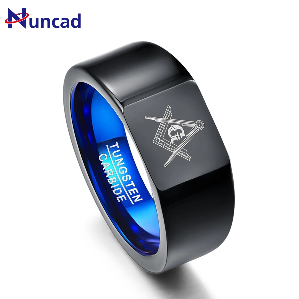 Nuncad ретро большой головой Стиль Вольфрам кольца карбида покрытие вакуум черный с синим Кольца Лазерная масонский знак Вольфрам кольцо t076r
