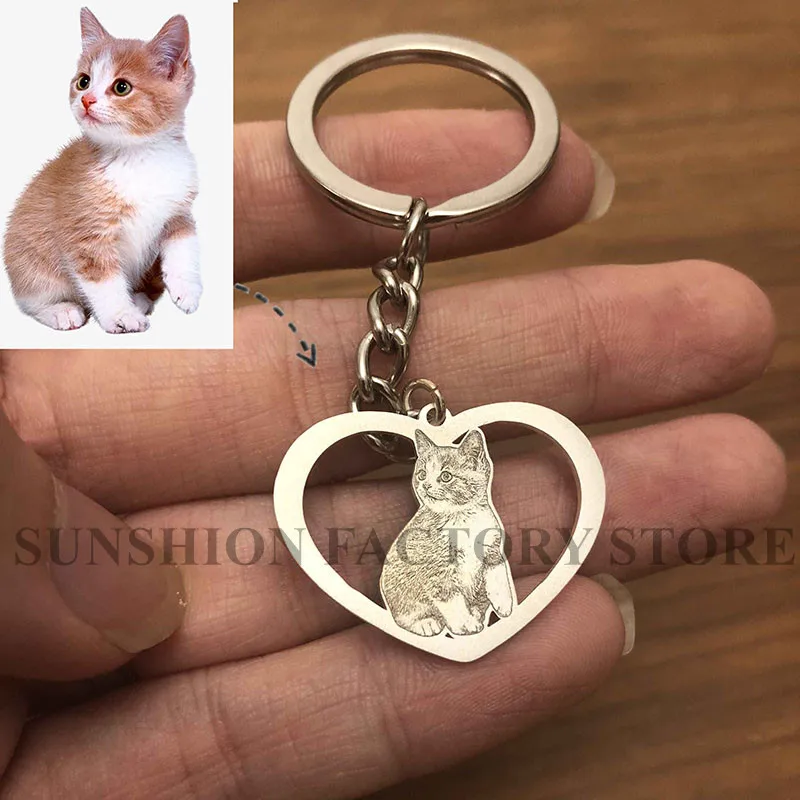 Пользовательские сердца фото брелок Подвески. Выгравированы 925 пробы серебряные ювелирные изделия. Вырез в форме сердца фотографии домашних животных. Индивидуальный брелок на заказ