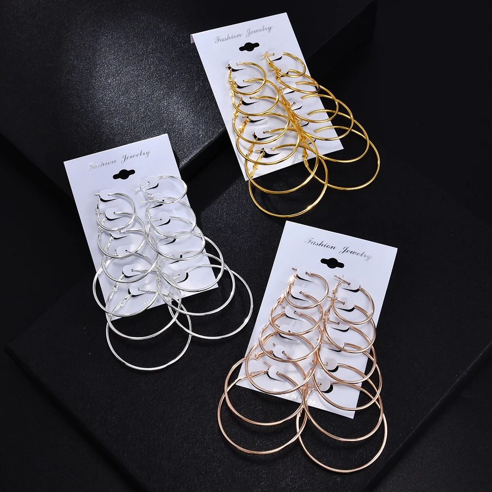 Женские винтажные серьги, большие металлические серьги золотого цвета в стиле панк, 6 пар/уп., модные вечерние серьги-вкладыши 2020