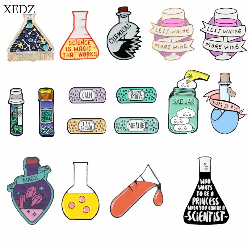 XEDZ Магическая Медицинская бутылка с научным химическим реагентом бутылка ватный шарик бандаж серия брошь коллекция значок ювелирные изделия деним c