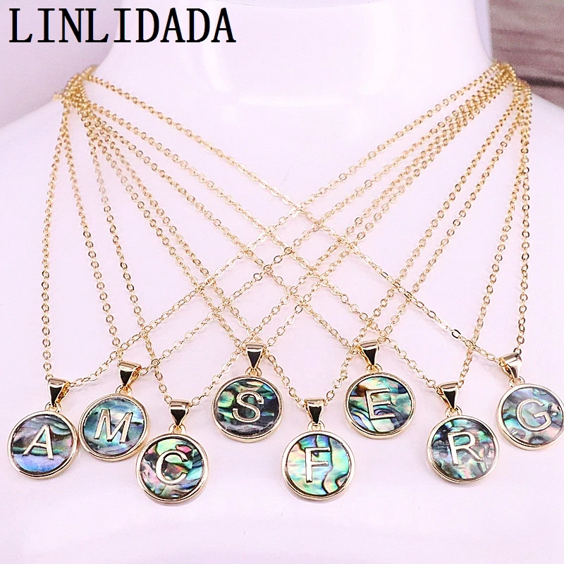 12 шт Позолоченные радужные раковины ювелирные изделия Модные Абалон раковина 26 Письмо Круглые Подвески Ожерелья