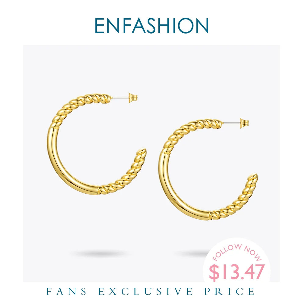 Женские серьги-обручи ENFASHION, простые круглые серьги золотистого цвета, модные ювелирные изделия, подарки, E1165