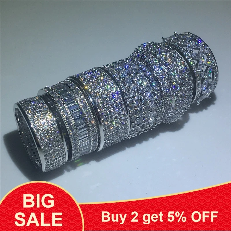 6 видов цветов Роскошные широкое кольцо из белого золота с АУЛА кубический цирконий Обручение обручальное кольцо кольца для мужчин и женщин...
