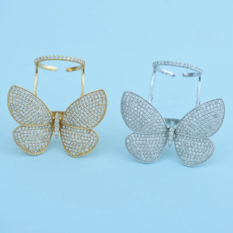 Женские открытые кольца AMORUI золотого цвета с бабочкой, романтические резинки с цирконием AAA, вечерние/Свадебные/юбилейные ювелирные изделия на палец