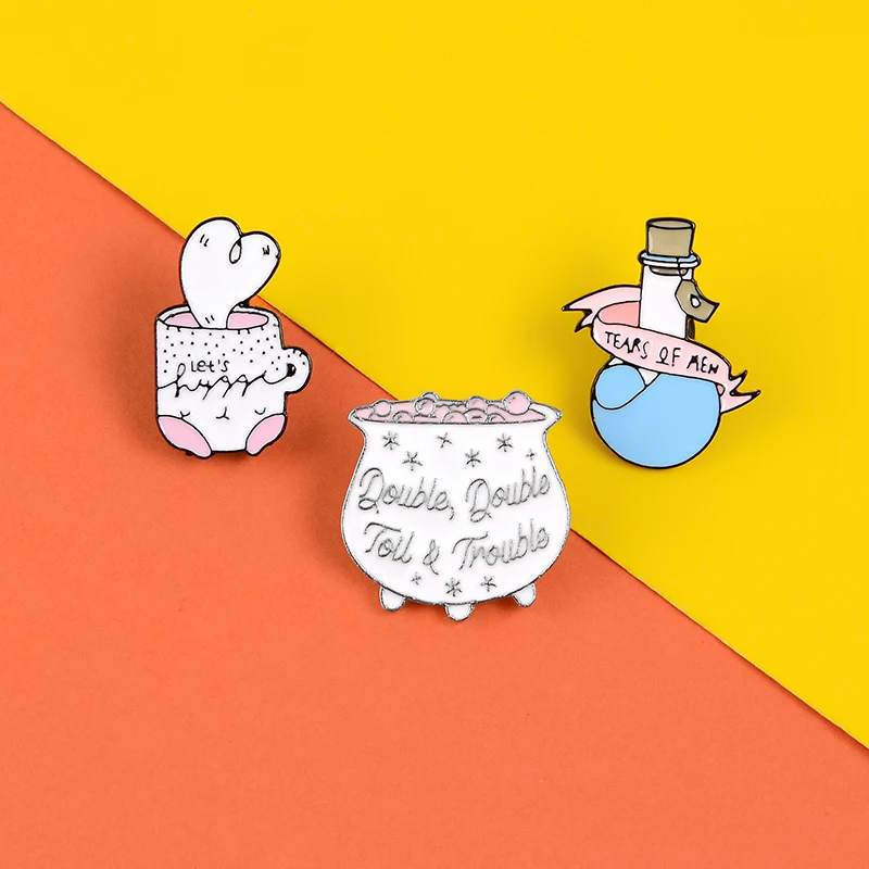 Волшебное зелье, эмалированные булавки, Kawaii, розовые, белые чашки, значки, броши, нагрудные булавки, одежда, сумка, шляпа, милые ювелирные изделия, подарки для женщин
