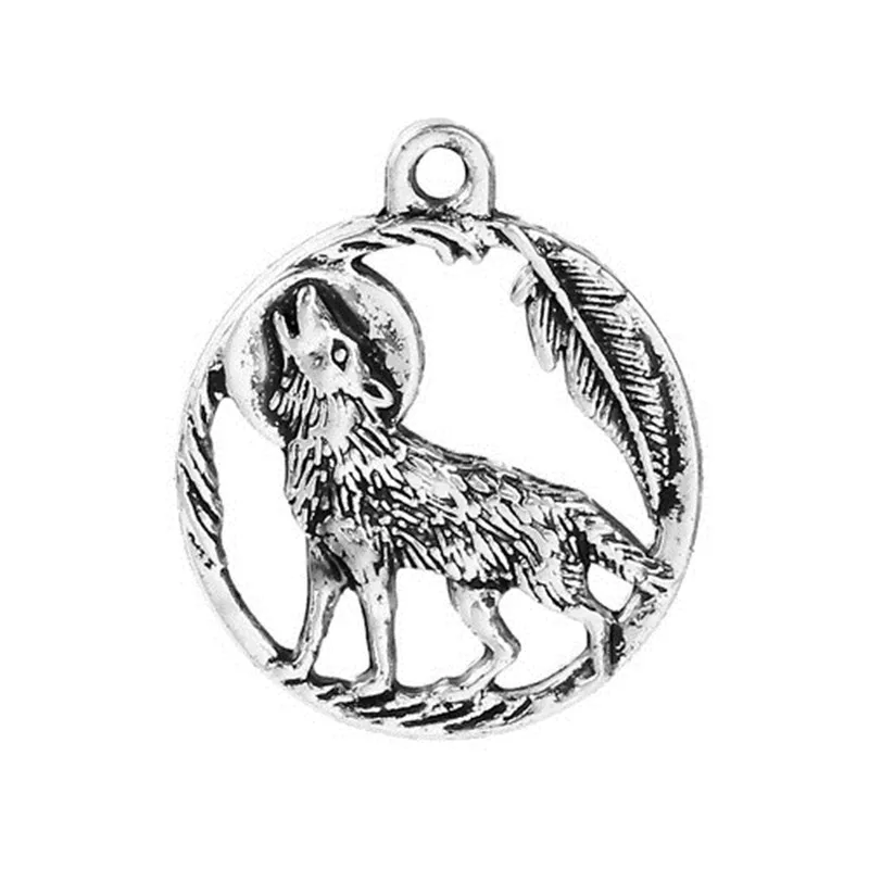 DoreenBeads цинковый сплав кулоны подвески волк античный, серебристый, круглый Стиль DIY ювелирных изделий 25 мм (1 ") x 21 мм (7/8 "), 4 шт.