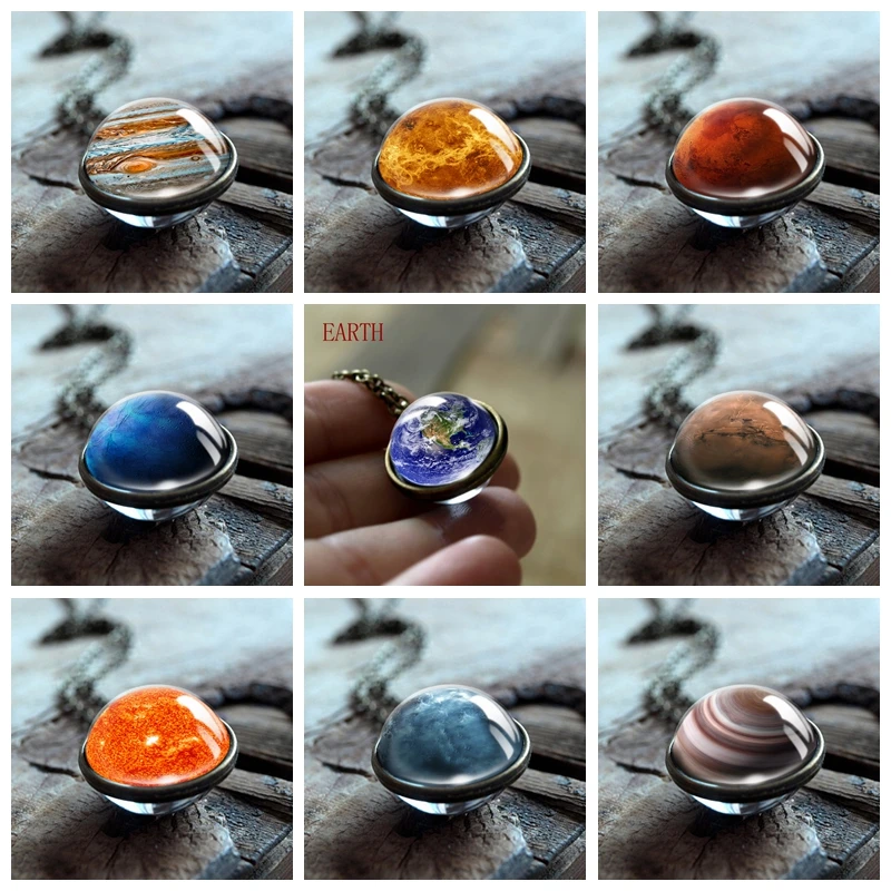 Ожерелье с подвеской на солнечной батарее, двухстороннее ожерелье с подвеской в виде звезд, Марса, солнца, Юпитера, ожерелье ручной работы