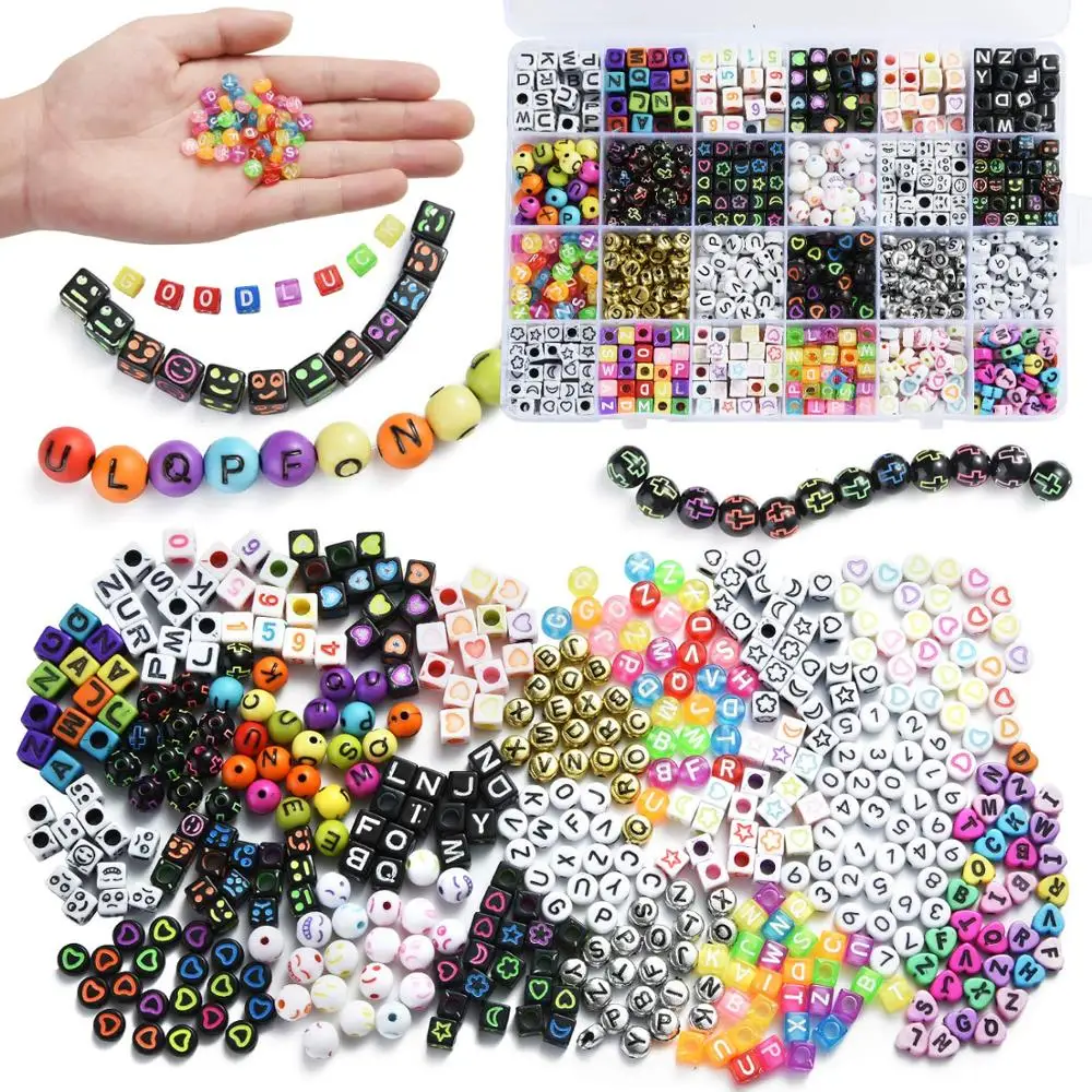 ZHUBI оптовая продажа буквенных цифр бусины с отверстием 6 мм 100 шт квадратные круглые бусины сердца смешанные для DIY изготовления ювелирных изделий и шарма браслет