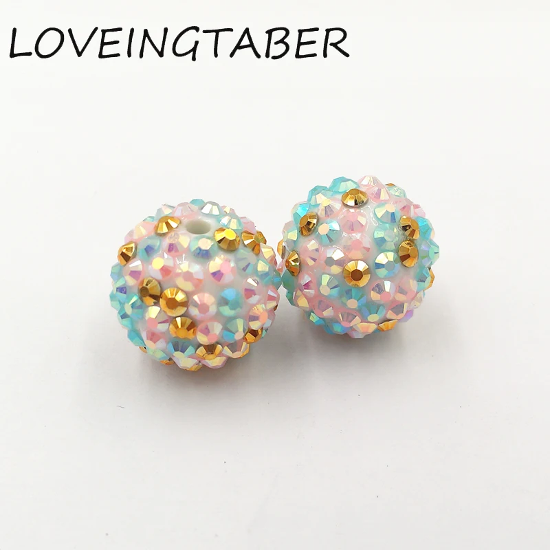Новейшие 20 мм 100 шт./лот розовые/синие/ярко-розовые/фиолетовые/золотые смешанные бусины из смолы и горного хрусталя, массивные бусины для изготовления ювелирных изделий для детей