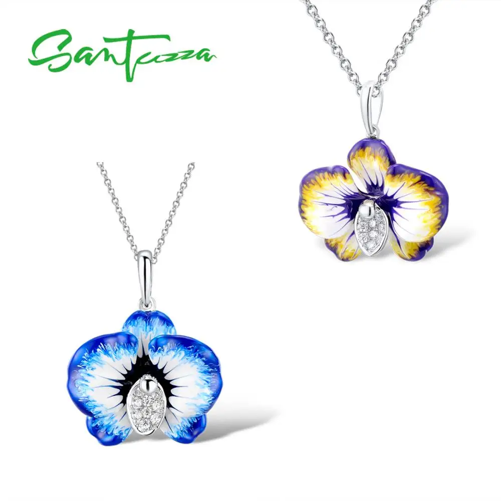 SANTUZZA Серебряный кулон для женщин 925 пробы Серебряный Синий цветок висячие кулон Кубический Цирконий brincos шикарные ювелирные изделия с эмалью