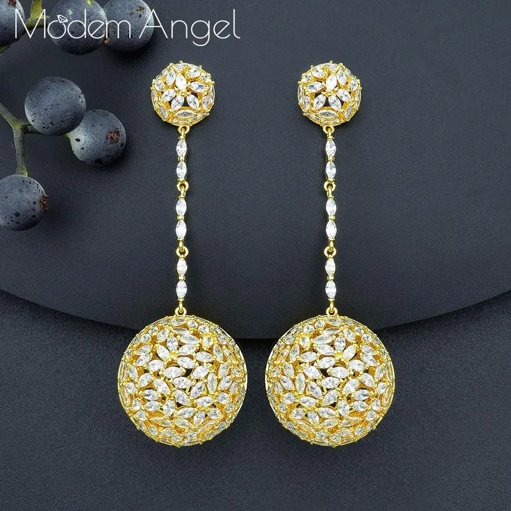 ModemAngel 75 мм Роскошные брендовые крупные медные серьги с кубическим цирконием, женские свадебные аксессуары