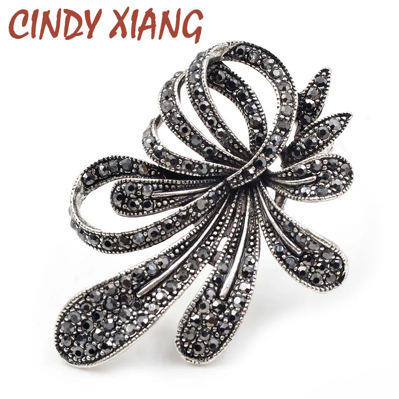 CINDY XIANG горный хрусталь черный цветок броши для женщин Винтаж под старину золотая булавка-брошь Элегантный Изысканный Броши подарок на Новы...