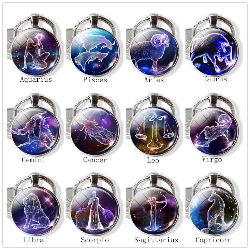 12 брелок для ключей «Созвездие» модные созвездий знаки Стекло кабошон металлический брелок-кольцо брелок-цепочка Ювелирные украшения со з...