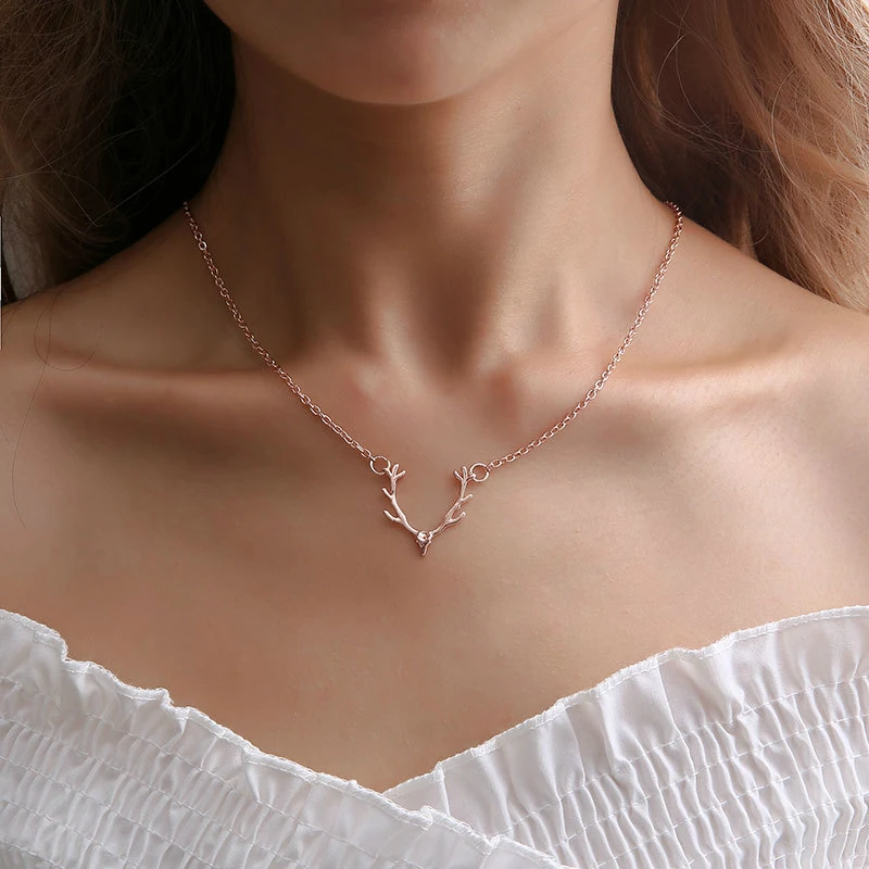 Милое романтическое ожерелье с подвеской в виде оленьего рога для женщин, розовая золотая цепочка-чокер, изящное ожерелье-чокер в виде ключицы, подарки для женщин и девушек